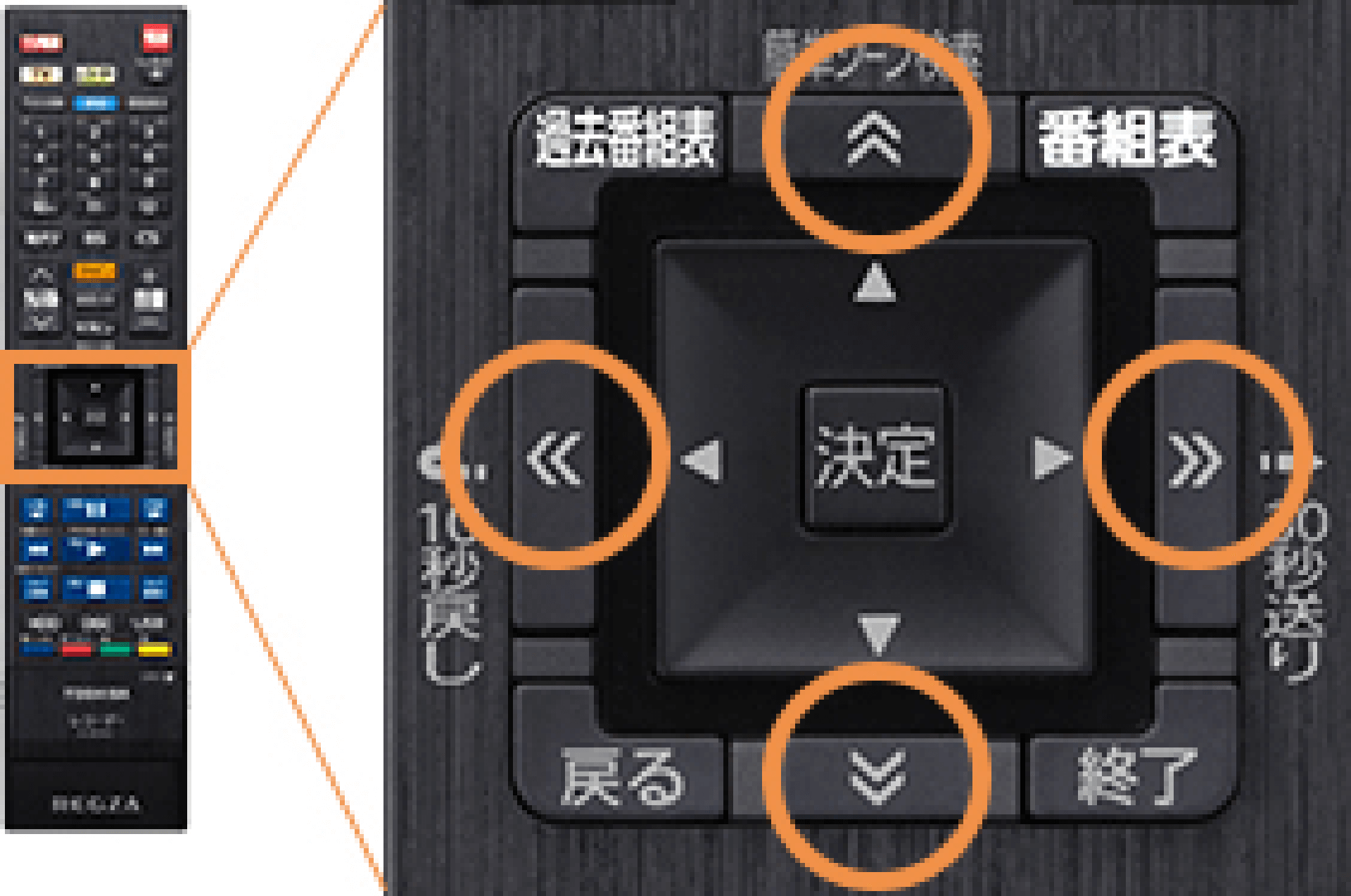 リモコンのスキップボタンで番組表の上下左右のページ切り替えができます。 ボタンを一回押すだけで、次の時間帯や前の時間帯、次のチャンネル帯へ一気に移動してくれるので、より快適に番組表を使えます。
