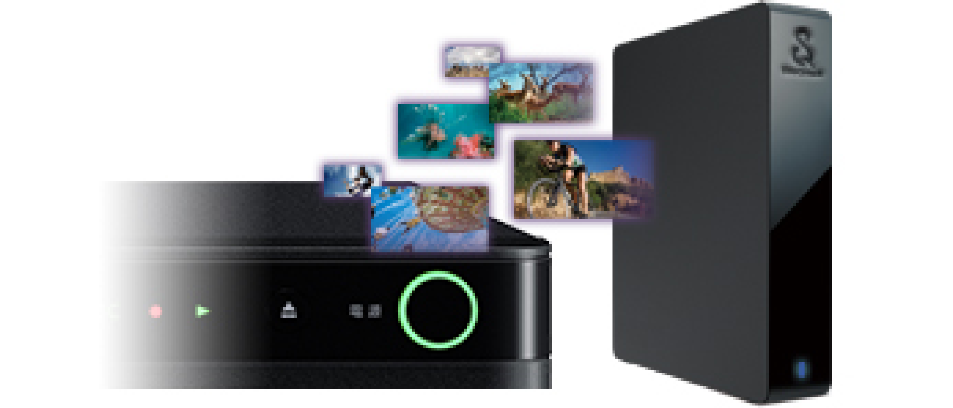 対応のチューナー*1を接続すれば、スカパープレミアムサービスの多彩な映像コンテンツを、LAN接続*2環境を利用して本機の内蔵ハードディスクに予約録画することができます。録画予約はチューナー側の設定のみで、本機側の予約は不要です。